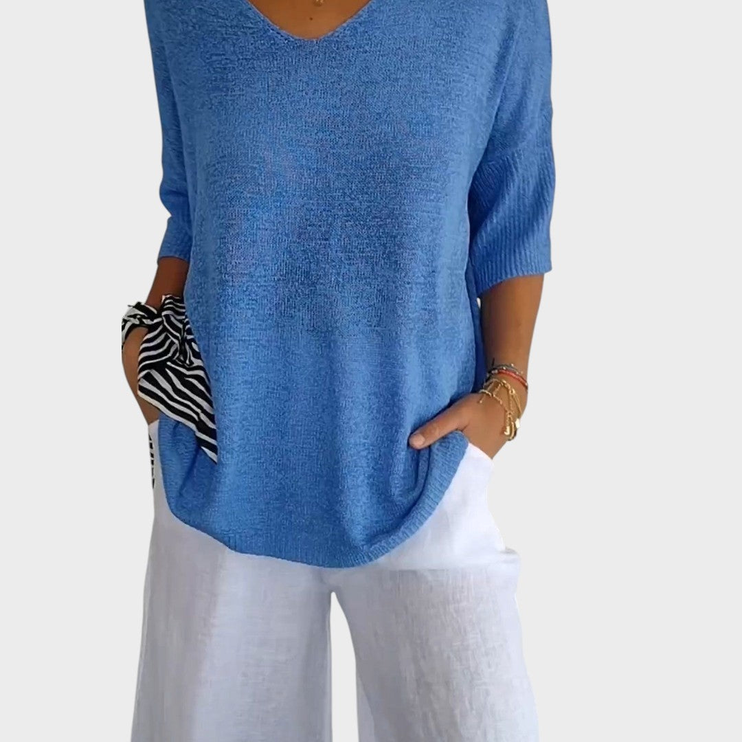 Sé el centro de atención con el top Filipa, que combina estilo y comodidad en un diseño realmente chic. Este suéter está diseñado para ofrecerte el ajuste perfecto y una sensación de lujo, para que puedas ponerte manos a la obra con confianza. Ya sea que salgas con amigos o en el trabajo, el suéter Filipa te mantendrá elegante y lista para cualquier situación.